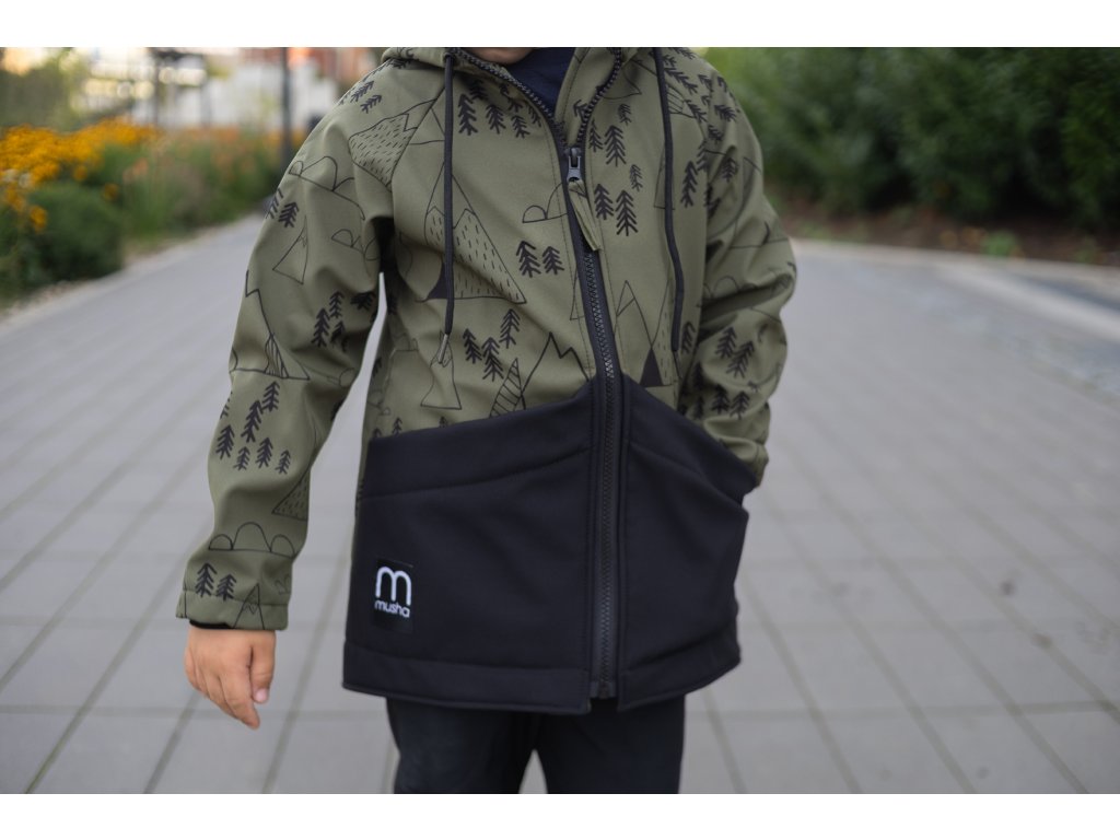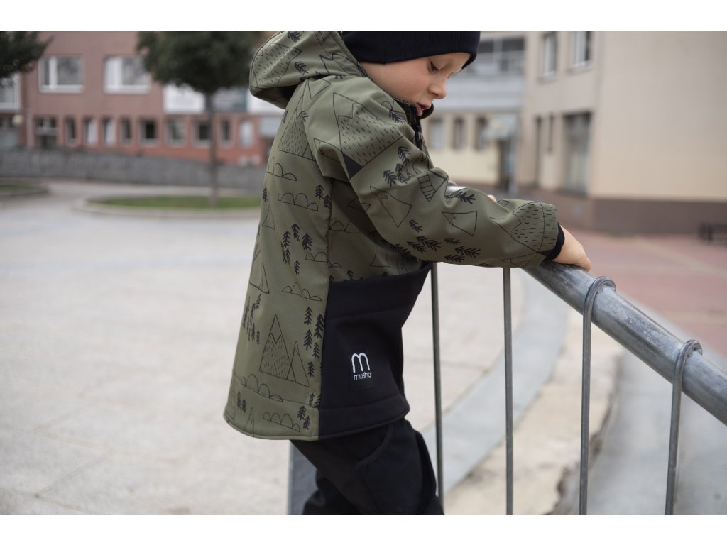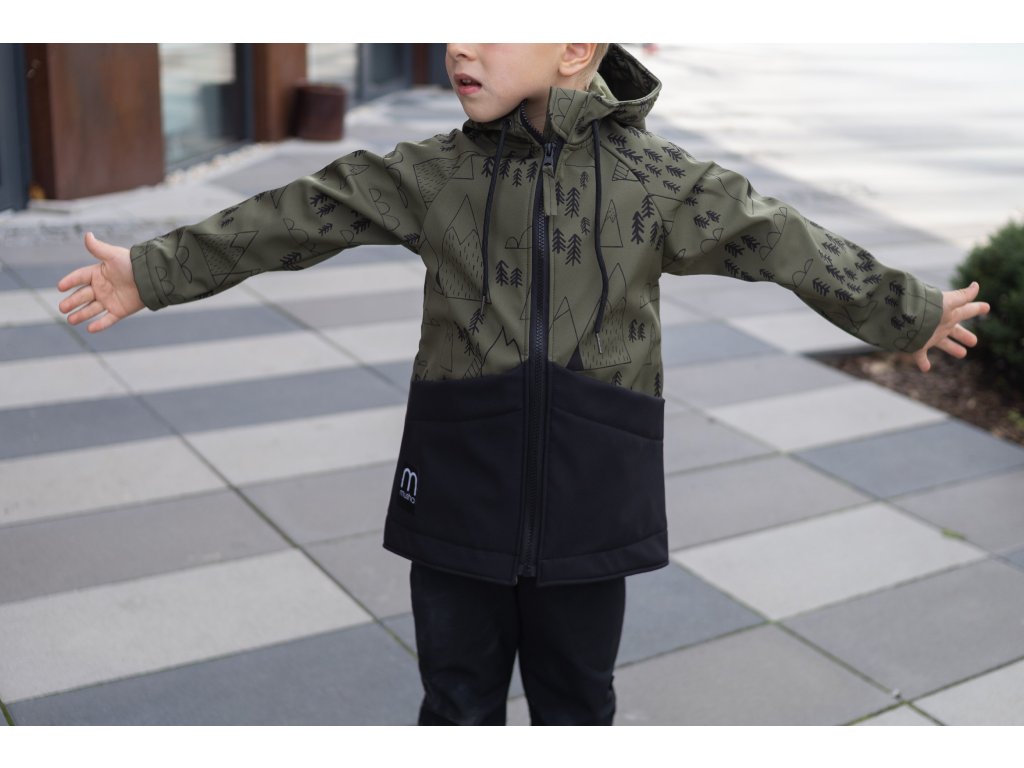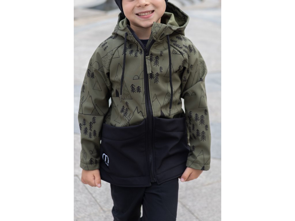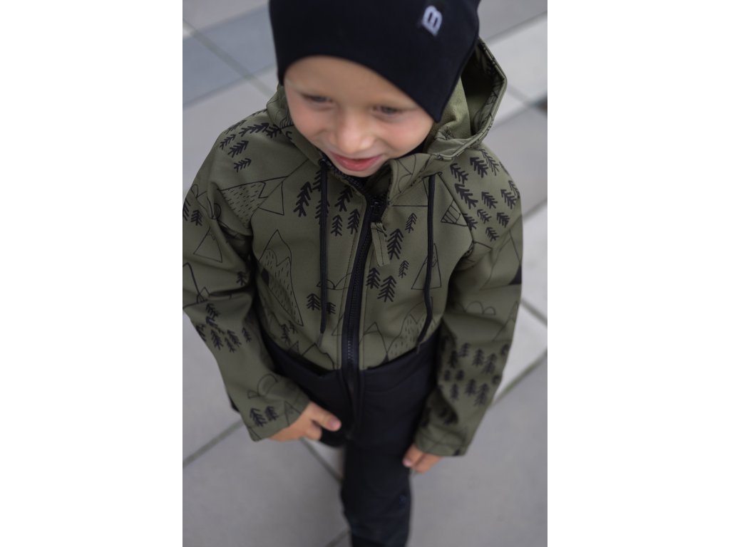 Dětská SOFTSHELLOVÁ bunda les a hory khaki