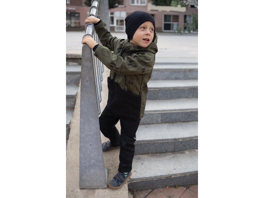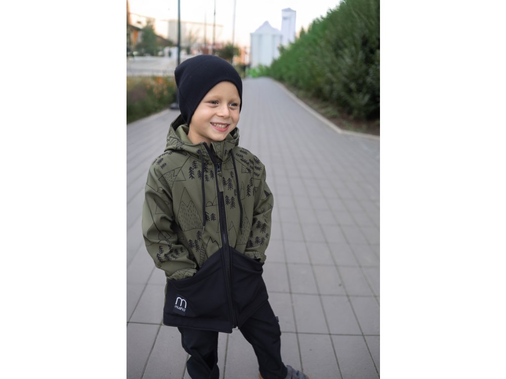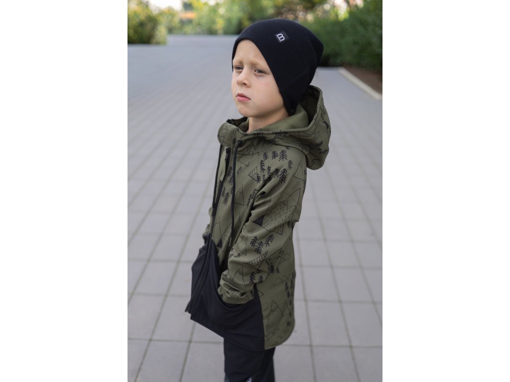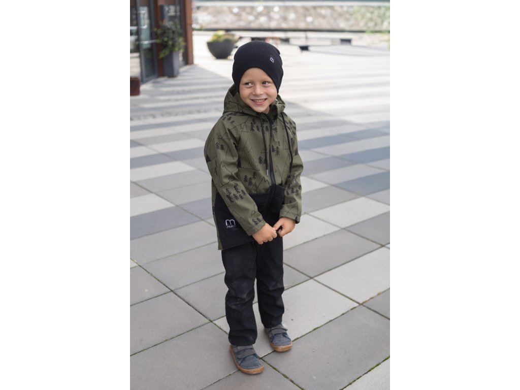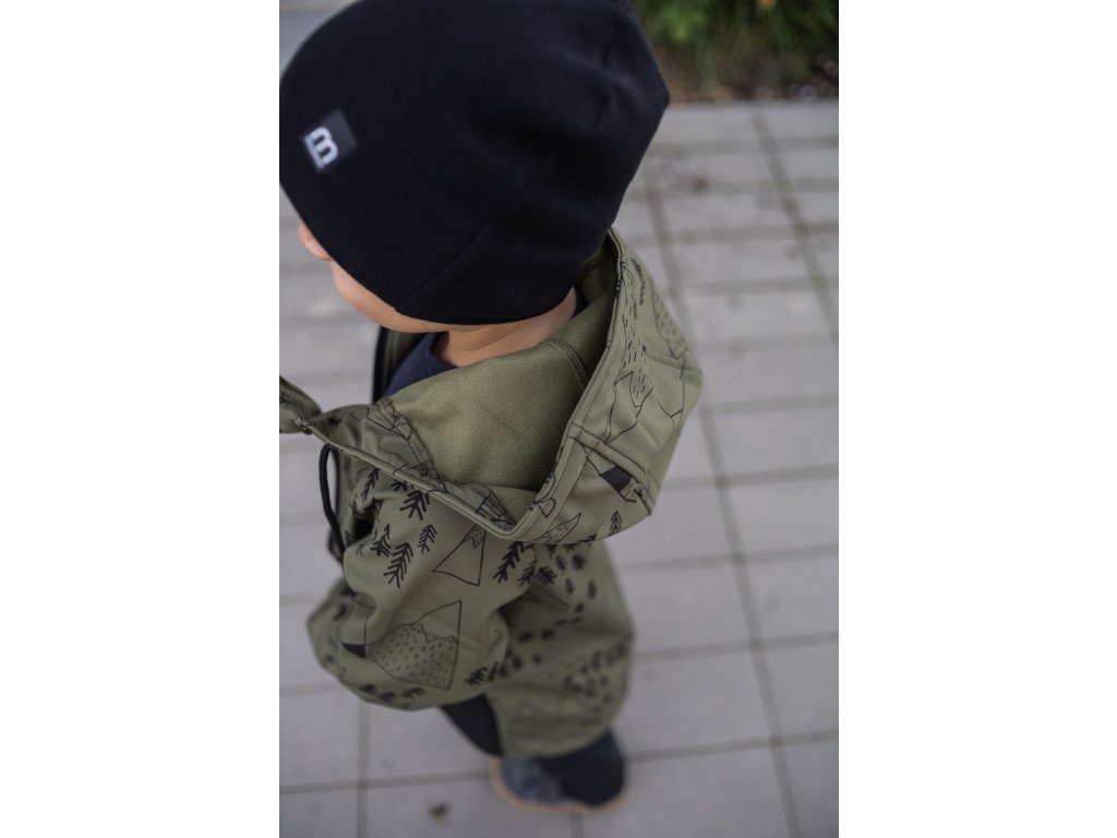 Dětská SOFTSHELLOVÁ bunda les a hory khaki