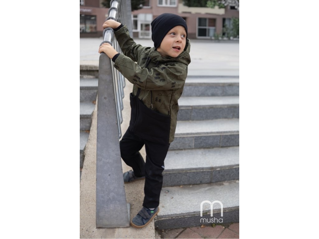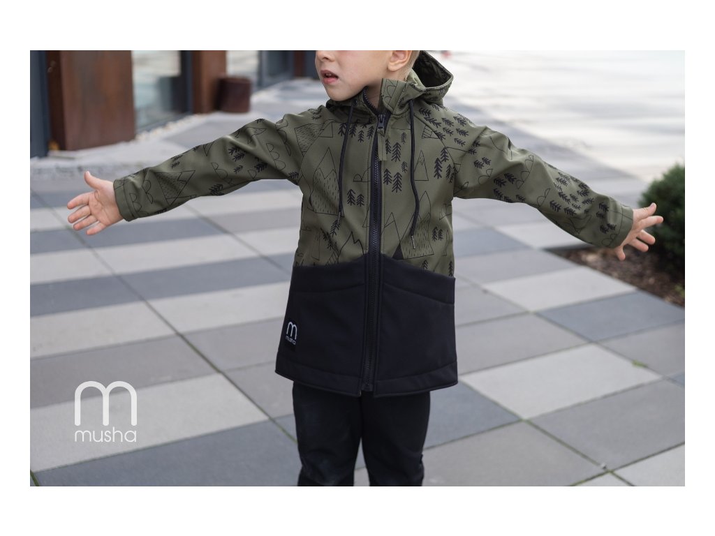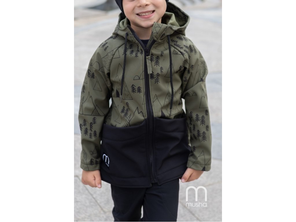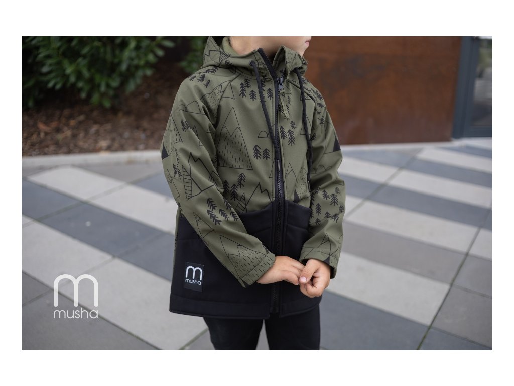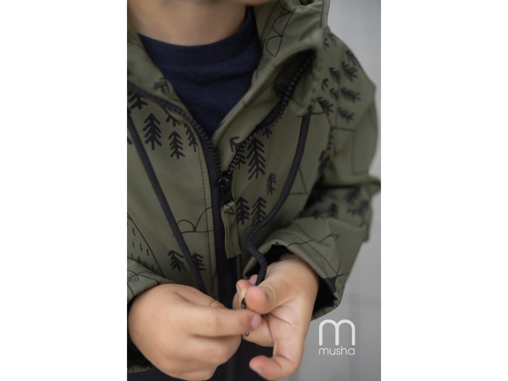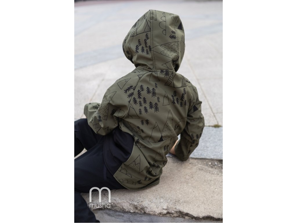 Dětská SOFTSHELLOVÁ bunda les a hory khaki