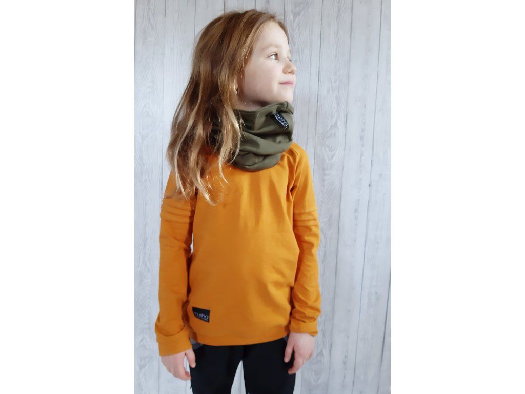 Jednobarevný nákrčník, který je široký tak akorát, aby netáhlo dětem na krk a zároveň nepřekáží. Hodí se na jaro, podzim a zimu
