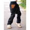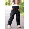 Náplety v pase, zakončení nohavic a lemy kapes jsou černé.