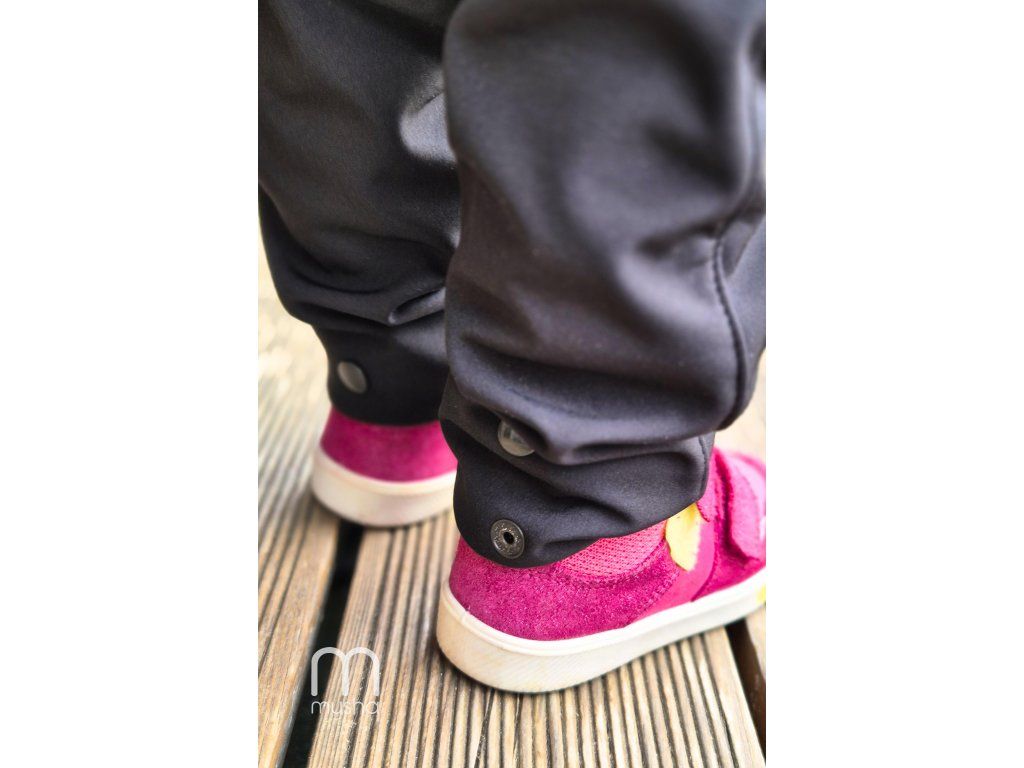 Na konci nohavic jsou patentky, které po rozepnutí prodlouží délku nohavic o cca 4 cm. Jedny kalhoty tak vydrží klidně o sezónu déle – praktické, úsporné a udržitelné řešení pro rodiče.