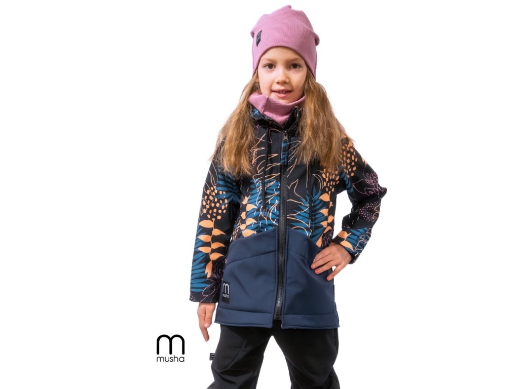 Dětská SOFTSHELLOVÁ bunda/květiny na modré