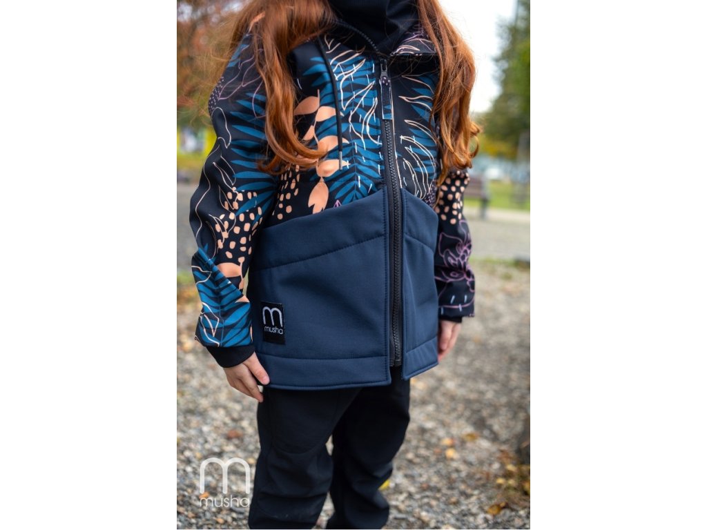Dětská SOFTSHELLOVÁ bunda/květiny na modré