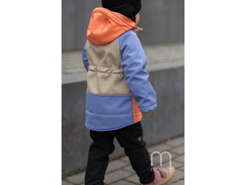 Naprostá novinka! Tříbarevná bunda pro holčičky v něžných tónech lososové, světle modré a béžové, přináší hravost i eleganci do každého nejen jarního dne.