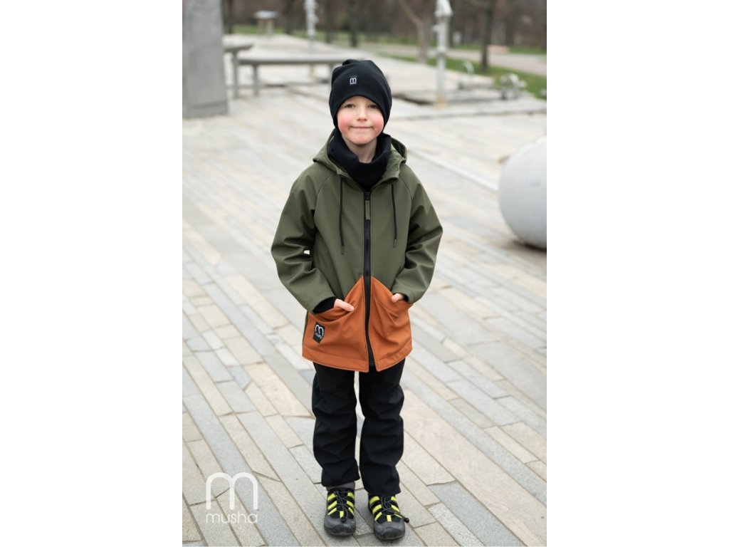 Dětská SOFTSHELLOVÁ bunda Musha khaki/skořice