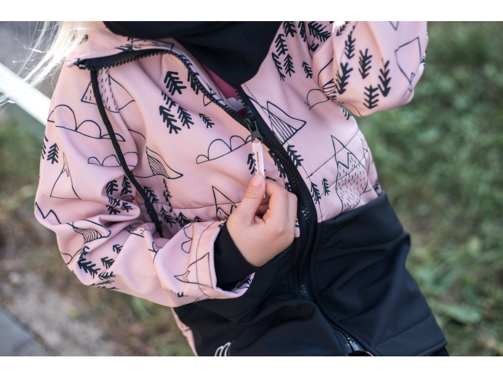 ZIMNÍ PODŠITÁ BUNDA STROMY A HORY NA RŮŽOVÉ