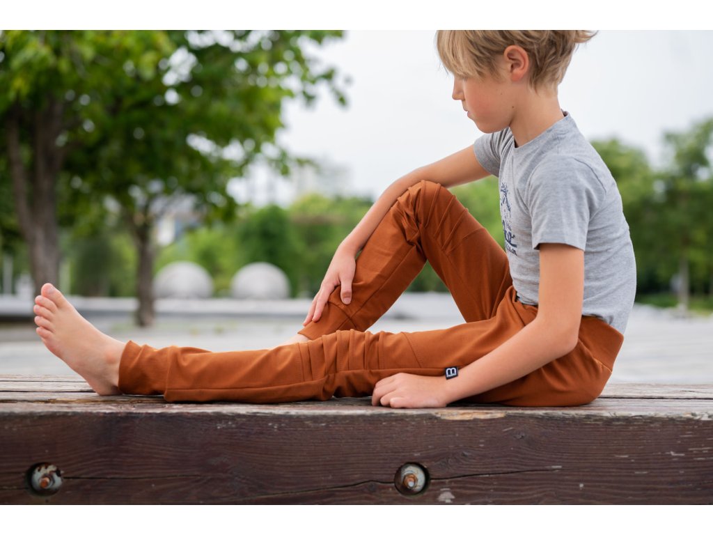 Tepláky SLIM - PROŠITÁ KOLENA skořice/karamel